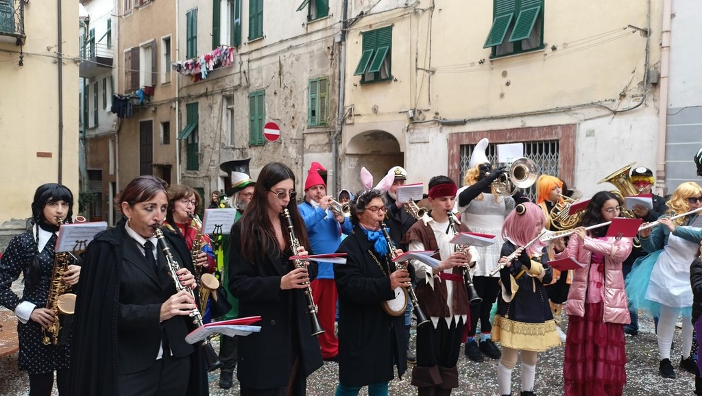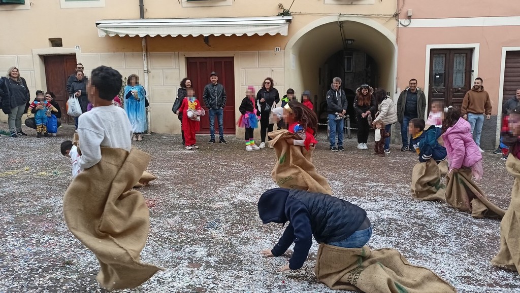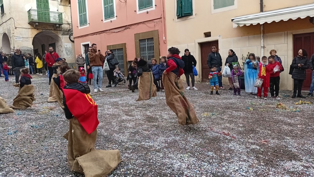 Un pomeriggio di divertimento per i più piccini con giochi, intrattenimenti e il concerto itinerante della banda musicale Città di Ventimiglia in maschera. In tanti hanno partecipato alla pentolaccia con caramelle e dolciumi, messa a disposizione dalla Scuola di Pace, e alla corsa con i sacchi.