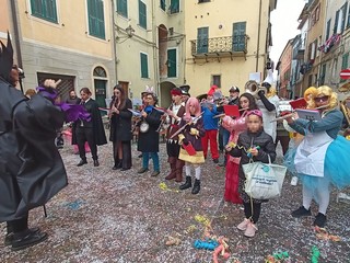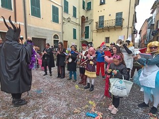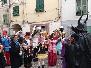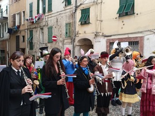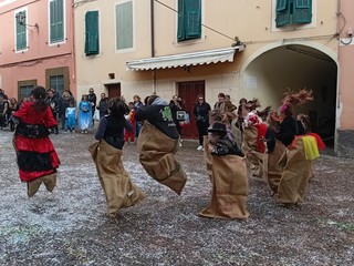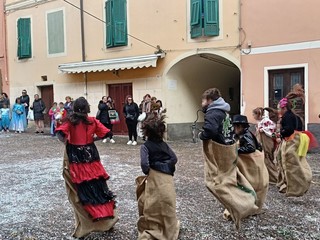 Un pomeriggio di divertimento per i più piccini con giochi, intrattenimenti e il concerto itinerante della banda musicale Città di Ventimiglia in maschera. In tanti hanno partecipato alla pentolaccia con caramelle e dolciumi, messa a disposizione dalla Scuola di Pace, e alla corsa con i sacchi.