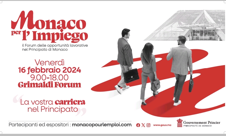 Venerdì prossimo, dalle 9 alle 18, si terrà al Grimaldi Forum a Monaco il ‘Forum per l'impiego’. Sono invitati a partecipare gli interessati ed intraprendere una carriera lavorativa a Monte Carlo, che oggi offre delle possibilità da non perdere.