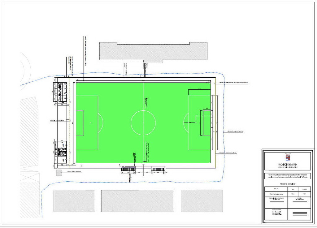 Interviene in questo modo il Consigliere di opposizione a Taggia, Giuseppe Federico, che prosegue: “Parliamo di un finanziamento (Italia ‘90) già deliberato dalla Provincia nel 1988 di circa 1.800.000 euro, sufficienti a realizzare un opera messa a bando per 1.212.000 euro ed assegnata in ribasso a circa 700.000 ad un gruppo di imprese con sede a Torino e Napoli. Chi si è aggiudicato il bando avrebbe dovuto realizzare, nel termine massimo di 180 giorni, un campo di calcio regolamentare in erba artificiale omologato dalla LND, utile per campionati fino alla categoria Eccellenza, dotato di volumi contenenti due spogliatoi per atleti, due spogliatoi per arbitri, un locale infermeria, un magazzino ed un locale tecnico”.