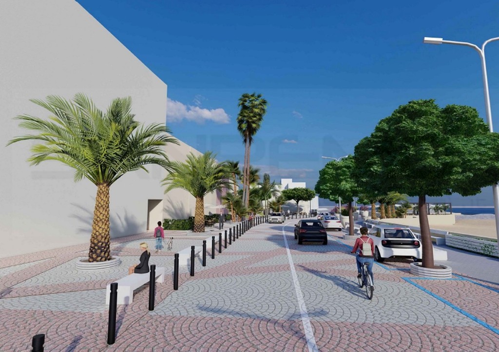 - rifacimento nuova pavimentazione su tutta la piazza, compreso il sedime stradale prospiciente, in modo da poter in determinati eventi utilizzare la piazza in tutta la sua profondità fino a collegarsi con la passeggiata a mare. Verranno posti in opera blocchetti in pietra con cadenze di colori bianco-grigio, secondo trame di progetto;