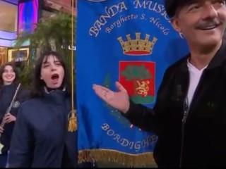 L'esibizione della banda di Bordighera è stata impreziosita dalla collaborazione con l’associazione Vittoria ASD di Vallecrosia con le majorettes Vittoria Scarcella e Gaja Barberis e con un'eccezionale portabandiera: la soprano Claudia Sasso, che ha avuto modo di regalare uno dei suoi acuti a Fiorello lasciandolo senza parole. "Ci siamo molto divertiti" - svela Anghinoni - "Abbiamo anche ricevuto l’invito per partecipare alla trasmissione a Roma come ospiti. Non so se riusciremo ad organizzarci per il Foro Italico ma è stato un onore per noi sentirsi così ben accolti".