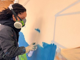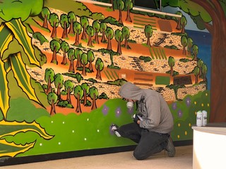 Per quanto riguarda invece la realizzazione fisica del Murales, la firma è duplice: l’opera è stata messa a punto dalle mani di due artisti imperiesi, Maurizio Taggiasco ed Elisabetta Colombo, con la tecnica dello spray su muro.
