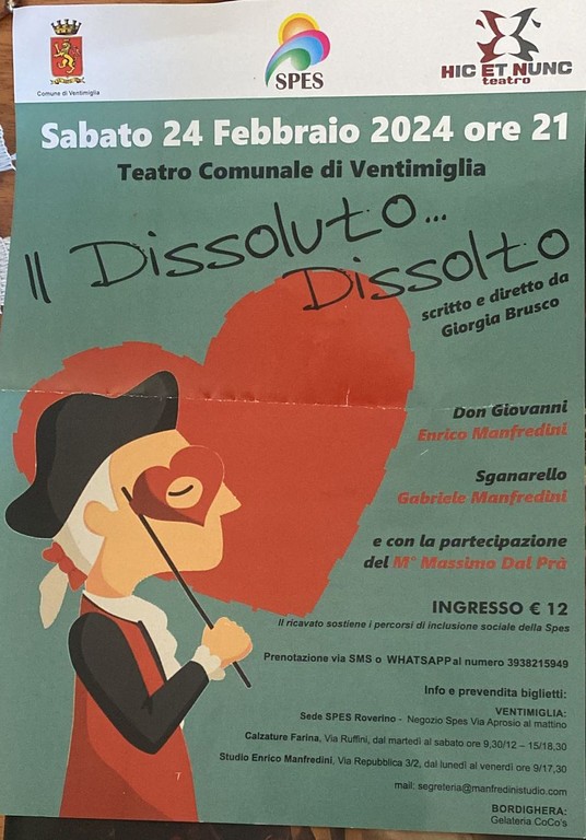 Una commedia molto brillante con Enrico Manfredini, Gabriele Manfredini e il maestro Massimo Dal Prà al pianoforte che avrà una finalità benefica, visto che il ricavato dell'evento sarà devoluto a sostegno dei percorsi di inclusione sociale della Spes.