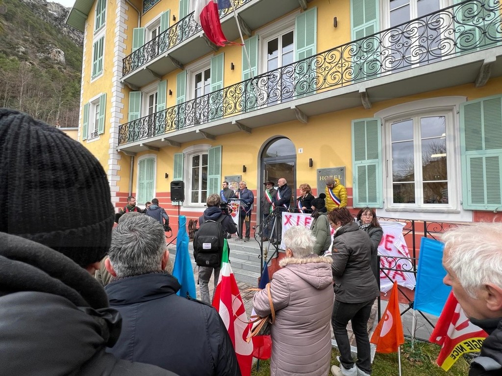 La manifestazione, originariamente organizzata direttamente sul colle, si è svolta invece a Tenda, visto che la nevicata di ieri ha consigliato a tutti di evitare le asperità per raggiungere il tunnel