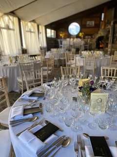 Il pranzo ha previsto la degustazione di un menù a 6 portate preparato dalla chef di casa Vanna Grillo con i relativi abbinamenti dei vini. I commensali hanno potuto assaggiare una crema di fagioli bianchi di Pigna con crostini al timo e rosmarino “chips” di cavolo nero accompagnata da un Pigato Riviera Ligure di Ponente Doc 2022 dell'azienda agricola Grillo, un brandacujun di stoccafisso e patate con polvere di olive taggiasche sorseggiando un Vermentino Riviera Ligure di Ponente Doc 2022 dell'azienda agricola Grillo, ravioli casarecci di borragine, bietole, mortadella, parmigiano reggiano 24 mesi con olio extra vergine di olive Taggiasche e maggiorana accompagnati da un Rossese di Dolceacqua, vigneti in Ciaixe Doc vendemmia 2022 Az. Agr. M.Grillo, un filetto di maiale spadellato con paté di olive taggiasche, purea di patate di montagna al profumo d’arancia con un Rossese di Dolceacqua Superiore Doc vendemmia 2022 Az. Agr. Grillo, una selezione di formaggi di capra e pecora stagionati con marmellata di fichi di vigna insieme a un Rossese di Dolceacqua Superiore Arcagna Doc vendemmia 2021 della cantina Gajaudo e, infine, uno zabaione al Moscato con le Pansarole artigianali accompagnato da un Dolcearoma da uve Moscato di Calosso d’Asti dell'azienda agricola L. Soria.
