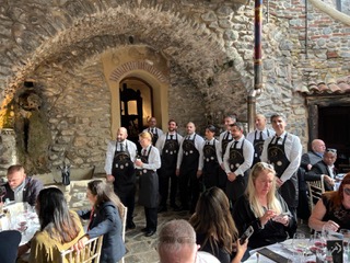 Il servizio è stato coordinato da due direttori e sommelier: Salvatore Papalia e Davide Sattanino. Nel corso del pranzo i vini dell’azienda Grillo sono stati presentati dai sommelier ASPI Riviera dei Fiori Davide Roagna, recentemente premiato come membro onorario ASM, e Salvatore Papalia e dalla collega francese, la sommelier Cécile Lemonnier. Ha concluso gli interventi Giorgia Gajaudo che ha presentato la Cantina Gajaudo e il suo Rossese di Dolceacqua Superiore 2021 “Arcagna” con il supporto dell’interprete Mario Chiodi, prossimo sommelier ASPI Riviera dei Fiori.