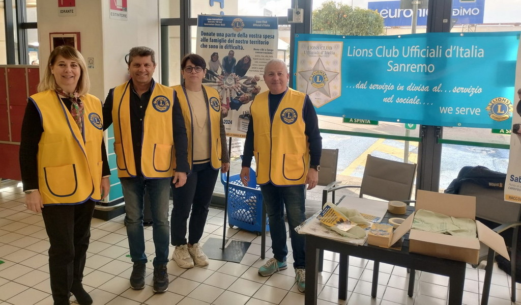 Il Lions Club Sanremo Host, al Carrefour di Bussana ha raccolto 500 kg, donati a i Frati Cappuccini, alla Parrocchia della Mercede, del Borgo e di San Rocco. Il Lions Club Sanremo Matutia, al supermercato Coop ha raccolto 633 kg, donati alla Parrocchia di San Rocco, ai Frati Cappuccini, all'Emporio Solidale, alla CRI di Sanremo e Bordighera, e a due mamme vittime di violenza.