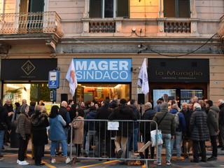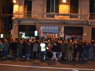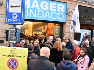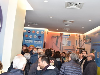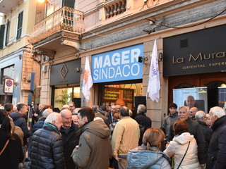 Almeno 500 persone ammassate soprattutto all’esterno, questa sera per l’apertura del point elettorale del candidato a sindaco della coalizione civica formata da sei liste, Alessandro Mager.