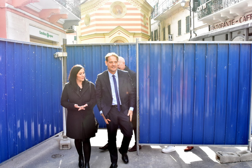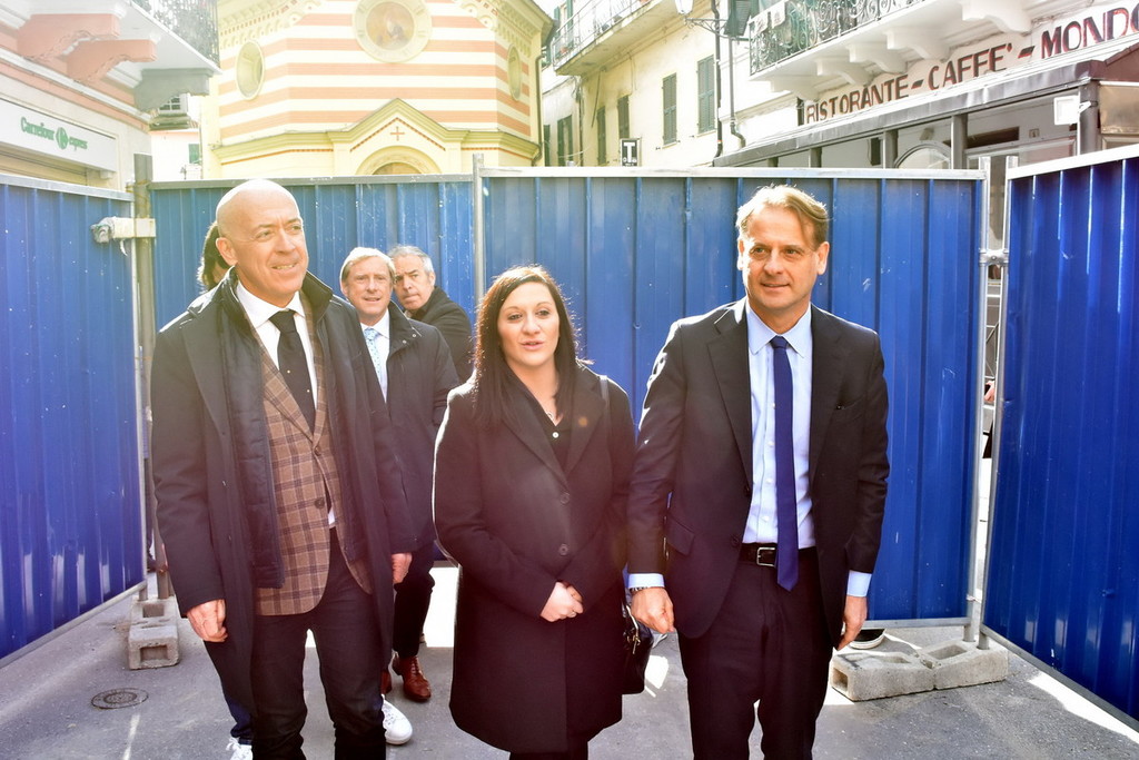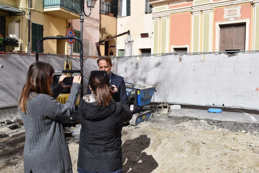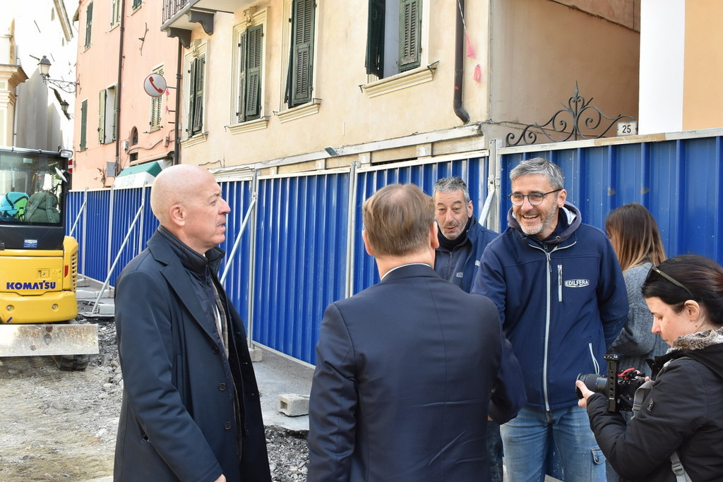 Qui l’assessore all’Urbanistica e all’Edilizia di Regione Liguria Marco Scajola, accompagnato dall’assessore comunale Massimo Donzella, ha svolto un sopralluogo sul cantiere di piazza San Sebastiano.