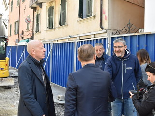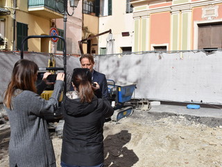 Qui l’assessore all’Urbanistica e all’Edilizia di Regione Liguria Marco Scajola, accompagnato dall’assessore comunale Massimo Donzella, ha svolto un sopralluogo sul cantiere di piazza San Sebastiano.