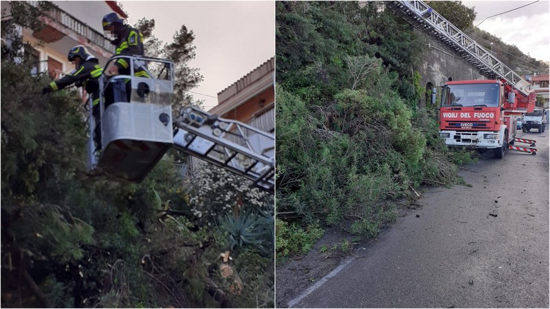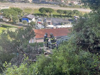 Camporosso, pino crolla sulla strada: vigili del fuoco in azione (Foto)