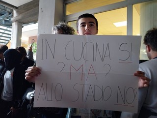 In centinaia questa mattina davanti alla scuola. "Ci dissociamo dalle parole del preside e chiediamo delle spiegazioni", dice il rappresentante d'istituto Alessandro Demasi