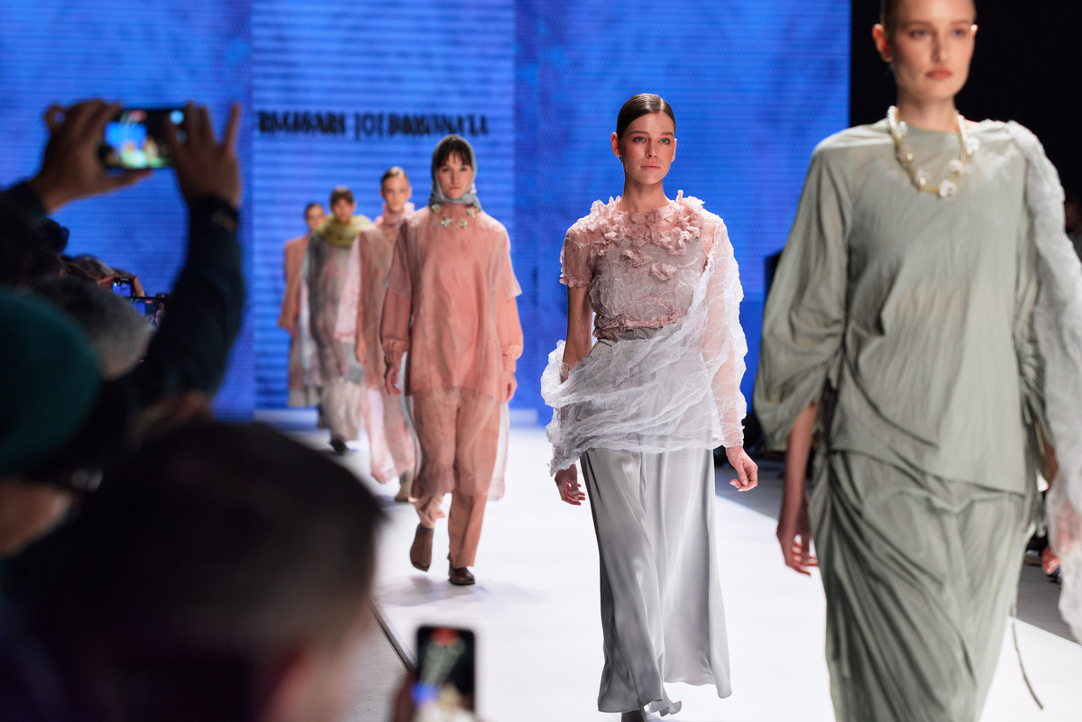 L'essenza della primavera era palpabile nelle collezioni di Alia Abaza (Egitto) e IRMASARI JOEDAWINATA (Indonesia), dove leggerezza ed elementi floreali erano predominanti. La linea di Alia Abaza presentava un mix di capi arricchiti con pizzi, bottoni metallici e motivi floreali, incarnando un'eleganza eclettica. IRMASARI JOEDAWINATA ha offerto una collezione che evoca un senso di libertà e leggerezza, con silhouette a cocoon e sciarpe di seta aeree che aggiungevano un tocco etereo alla passerella.