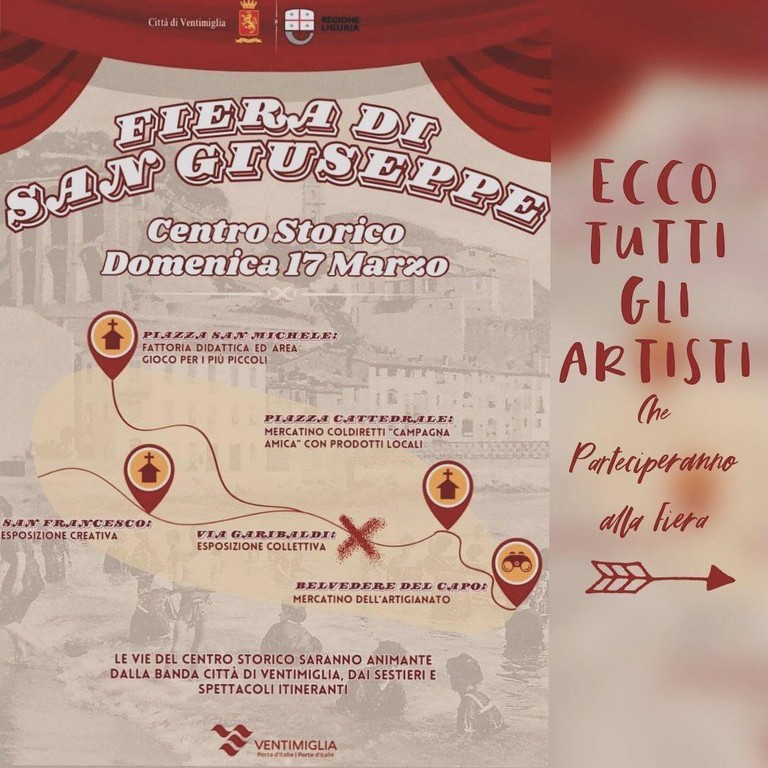Saranno dodici gli artisti che esporranno le loro opere alla Fiera di San Giuseppe che andrà in scena domenica, il 17 marzo, dalle 10 alle 18 a Ventimiglia Alta.