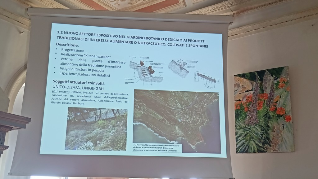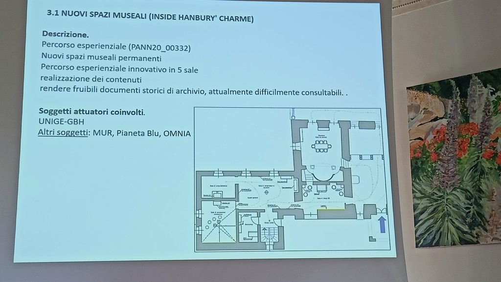 "Per la promozione culturale vi è una visione interna ed esterna. L'interna è legata a nuovi spazi museali per diffondere la conoscenza e consapevolezza del ruolo storico svolto sul territorio dai giardini botanici Hanbury, dal suo fondatore e dai suoi epigoni. Il progetto ha l'obiettivo di garantire l'accesso a materiale documentale mediante strumenti innovativi di comunicazione trasversale e transdisciplinare della cultura. E' previsto l’allestimento di nuovi spazi museali permanenti con un percorso esperienziale innovativo in 5 sale con exhibit e postazioni interattive che permetteranno la fruizione immersiva e coinvolgente, da parte di diverse categorie di utenti, di contenuti multimediali dedicati a far crescere una diffusa consapevolezza del valore del capitale naturale e dell'importanza della scienza e della tecnologia per la vita quotidiana e lo sviluppo sostenibile della società. Il visitatore virtualmente potrà godere delle fioriture nelle diverse stagioni e delle bellezze dei giardini. Vorremo raccontare anche il passaggio di personaggi famosi nei giardini e nella zona. Sarebbe un momento di arricchimento" - illustra Minuto - "Inoltre, vorremo ripristinare l'orto del giardino per coinvolgere il territorio e mostrare le eccellenze dell'orticoltura locale. Sarebbe, infatti, un'occasione per mostrare i prodotti locali e dell'entroterra e farli assaggiare ai visitatori. Si ricupererebbe così un'area degradata dell'area protetta regionale dei giardini botanici Hanbury per migliorare il quadro paesaggistico e creare un nuovo attrattore naturalistico-culturale, attraverso la realizzazione di un kitchen garden dedicato alle piante spontanee e coltivate della tradizione. Saranno, inoltre, messi a dimora anche vitigni storicamente coltivati nel territorio lungo una pergola. Previste anche attività didattiche e di sensibilizzazione sui temi generali del progetto con particolare riguardo alla biodiversità. Sono previsti incontri con insegnanti di scuole primarie e secondarie per sviluppare percorsi educativi differenziati per età ma inclusivi con visite guidate tematiche e laboratori didattici per avvicinare e far conoscere ai giovani le bellezze dei giardini. L'unico problema al momento sono i trasporti perché il servizio navetta degli scuolabus non c'è più e, perciò, chiediamo un aiuto al Comune per risolvere il disagio".