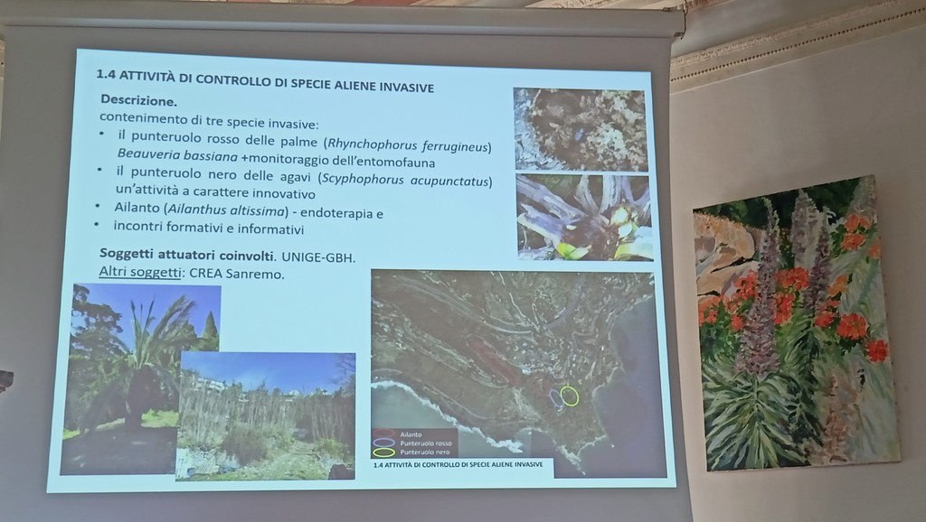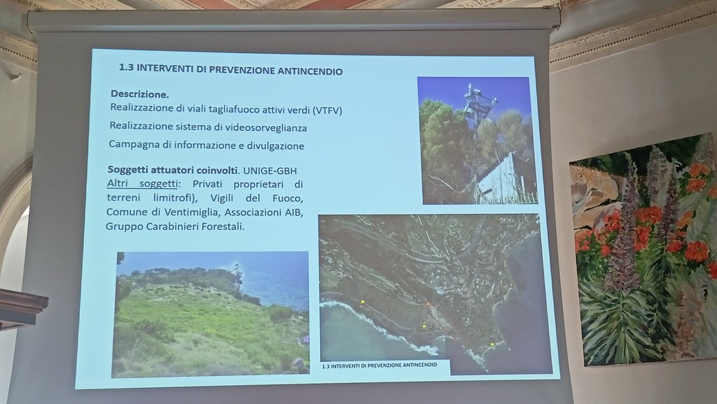 "Il progetto prevede interventi a terra e in mare" - spiega Luigi Minuto, presidente del centro servizi per i Giardini Botanici Hanbury - "Per tutelare le specie protette e minacciate dagli ecosistemi terrestri verranno organizzati interventi di ripulitura da rifiuti di percorsi, spiaggia e aree di accesso pubblico con controllo periodico sulla rete stradale, le zone sosta e i principali percorsi per prevenire il degrado. Tra gli obiettivi vi è anche la rinaturalizzazione della parte inferiore del vallone del rio Sorba e della spiaggia di Capo Mortola con nuova zona umida e vegetazione specifica. Rinaturalizzazione di una zona ora coperta da specie invasive attraverso la ricostituzione di habitat propri delle zone umide focive litoranee. Per preservare il patrimonio si vorrebbe fare uno studio più mirato sulla prevenzione antincendio. Si intende realizzare attività di controllo e un piano d'azione contro la diffusione delle specie esotiche invasive. Sono in arrivo insetti e patologie nuovi che vanno controllati, come il punteruolo rosso delle palme, il punteruolo nero delle agavi e l'ailanto. Ci stiamo organizzando con i carabinieri forestali per intervenire e fare tagli. Questo lavoro non è strettamente routine del centro ateneo che gestisce i giardini ma è stata cofinanziata una borsa di dottorato che permetterà di fare uno studio più approfondito su una problematica che non riguarda solo noi ma tutta la Riviera di Ponente. Facciamo anche un monitoraggio degli artropodi. Abbiamo fatto un pre monitoraggio dei trattamenti ora vogliamo sapere cosa accade per verificare che non si siano creati dei disordini".