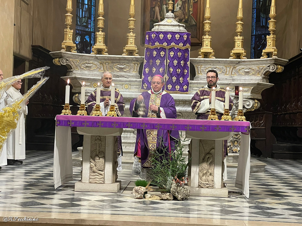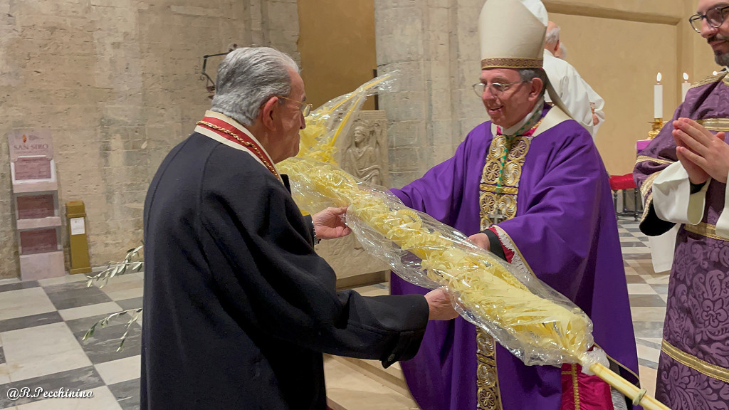 Si è svolta ieri nella Concattedrale di San Siro la cerimonia di presentazione da parte del Presidente della Famija Sanremasca Leone Pippione, al Vescovo S.E. Mons. Antonio Suetta, dei "Parmureli" che saranno offerti a Papa Francesco il 24 marzo, per la cerimonia della Domenica delle Palme in Vaticano a Roma.