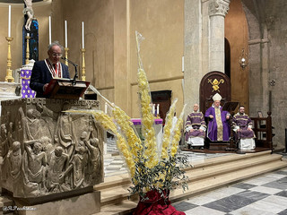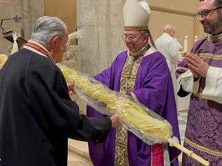 Si è svolta ieri nella Concattedrale di San Siro la cerimonia di presentazione da parte del Presidente della Famija Sanremasca Leone Pippione, al Vescovo S.E. Mons. Antonio Suetta, dei "Parmureli" che saranno offerti a Papa Francesco il 24 marzo, per la cerimonia della Domenica delle Palme in Vaticano a Roma.
