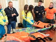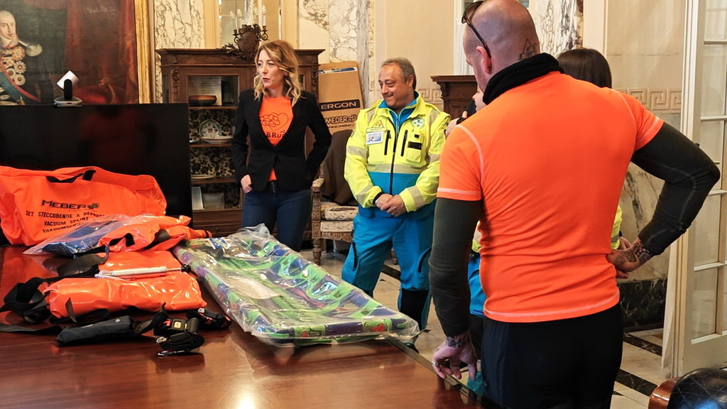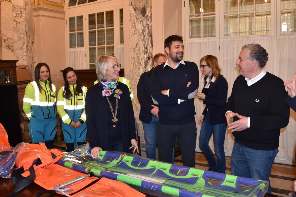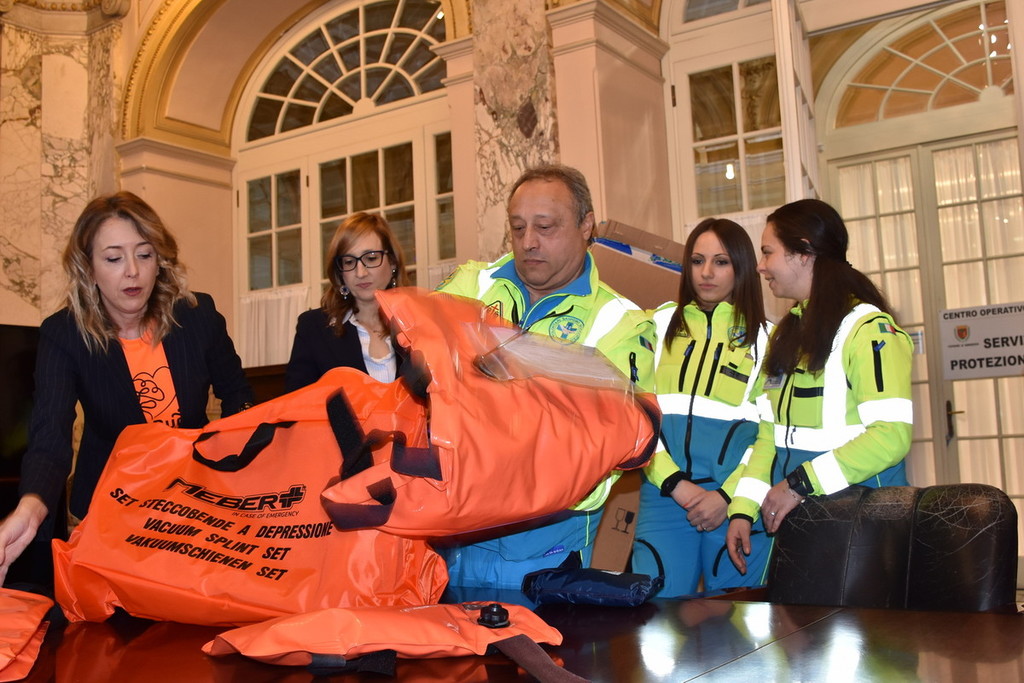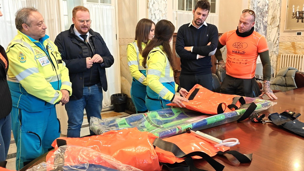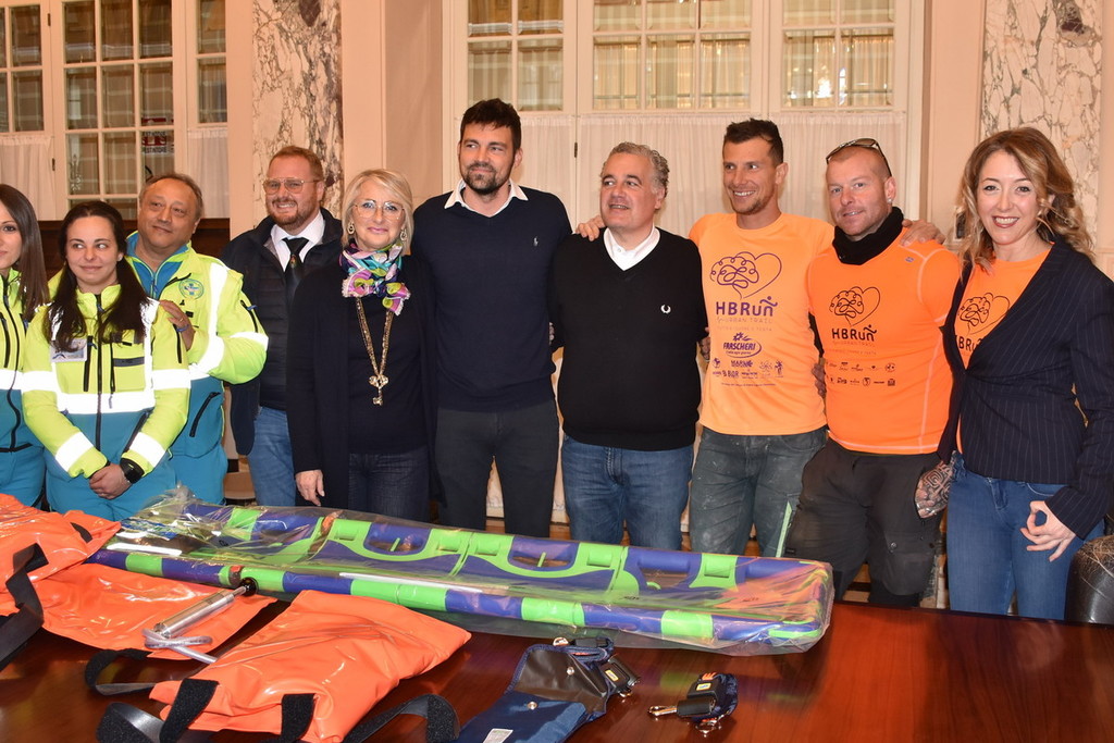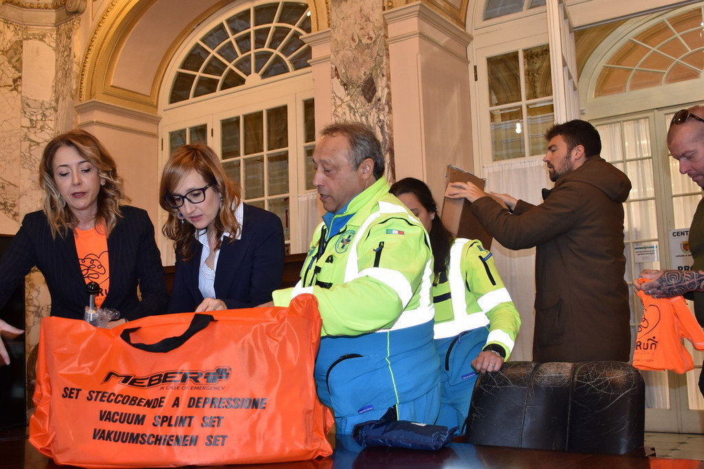Una serie di attrezzi importanti per soccorrere i feriti e i malati, dall’associazione HB Run che organizza da due anni un appuntamento sportivo per sensibilizzare la popolazione ai benefici dello sport per la salute.