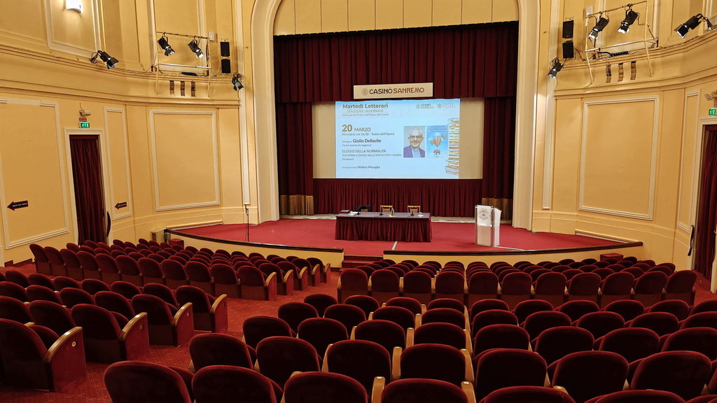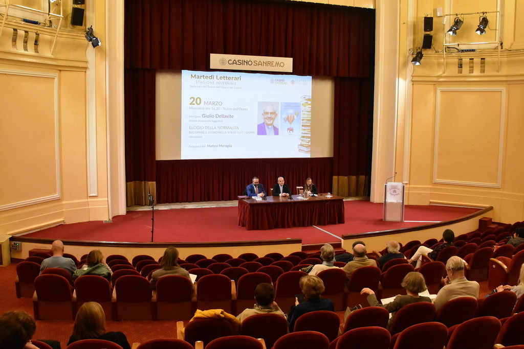 Mons. Giulio Dellavite (Premio Semeria alla Saggistica) ha presentato, al teatro del Casinò di Sanremo, l’opera risultata vincitrice ‘Elogio della normalità, riscoprire il divino nella vita di tutti i giorni’ (Mondadori). Con lui Matteo Moraglia, storico, presidente della Giuria del Premio Letterario Internazionale Casinò di Sanremo Antonio Semeria.