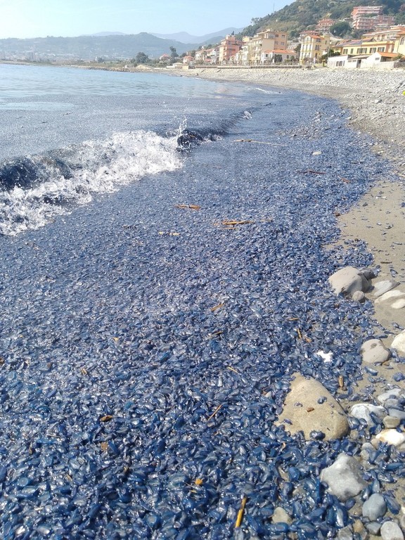 Anche quest’anno a Riva Ligure si è ripetuto il fenomeno dello della 'Velella velella' sulla battigia. Le immagini ci sono state inviate dalla nostra lettrice Gabriella.