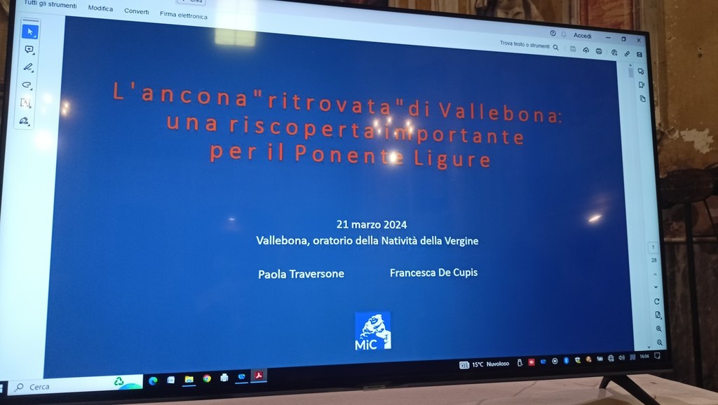 "In occasione della presentazione del restauro e in vista della Giornata Fai di Primavera cogliamo l'occasione per presentare la nuova brochure sull'oratorio della Natività di Maria: 'I tesori di Vallebona'" - annuncia il sindaco di Vallebona Roberta Guglielmi durante la presentazione, moderata dal direttore dell’Ufficio Beni Culturali Diocesano Valentina Silvia Zunino, avvenuta ieri pomeriggio.