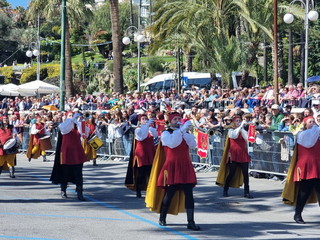 Gli sbandieranti e musici del libero comune marinaro hanno accompagnano il carro di Ventimiglia durante il corso fiorito di Sanremo 2024.