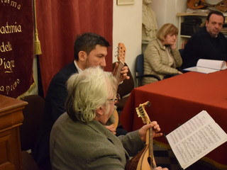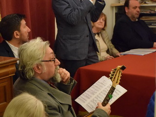 Apprezzati gli interventi musicali del duo Freddy Colt al mandolino e Marco Perotti alla chitarra. L’intenso pomeriggio si è chiuso con l’ascolto della voce di Franco D’Imporzano nell’interpretazione della parodia dialettale da lui composta sull’aria di “Come pioveva”, la spassosa “A ghe staixeva…”, dal cd “Concertìn sanremascu” inciso dai Nipoti d’Arte nel 2008.