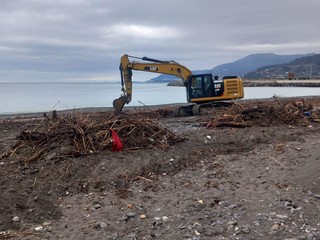 Tronchi e rifiuti sulla spiaggia. Ruspe entrano in azione a Ventimiglia. Nonostante il maltempo oggi stanno, infatti, intervenendo per occuparsi della pulizia della spiaggia.