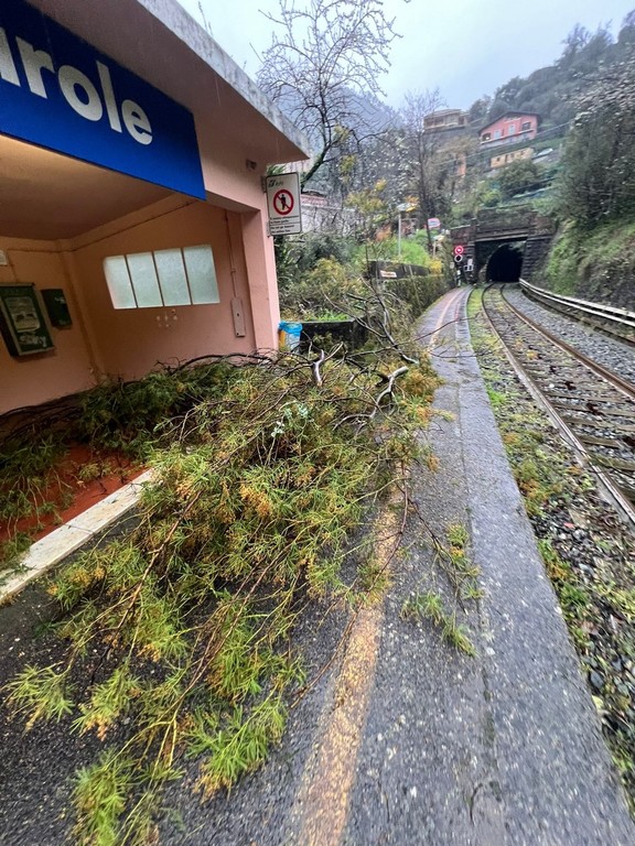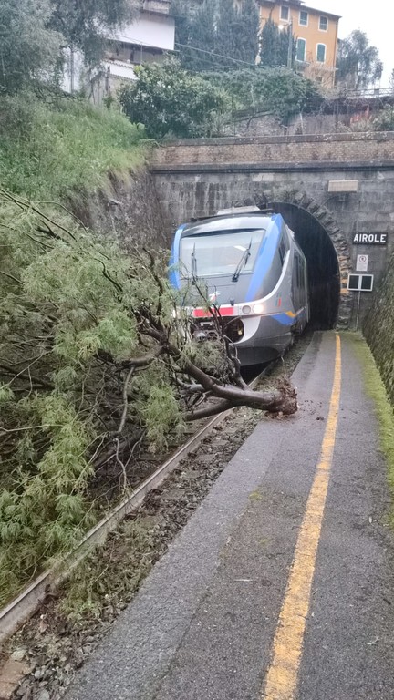 Traffico ferroviario bloccato a causa della caduta di un albero di mimosa sui binari ad Airole. E' successo questa mattina, intorno alle 6.45, nei pressi della piccola stazione ferroviaria del paese della val Roya.