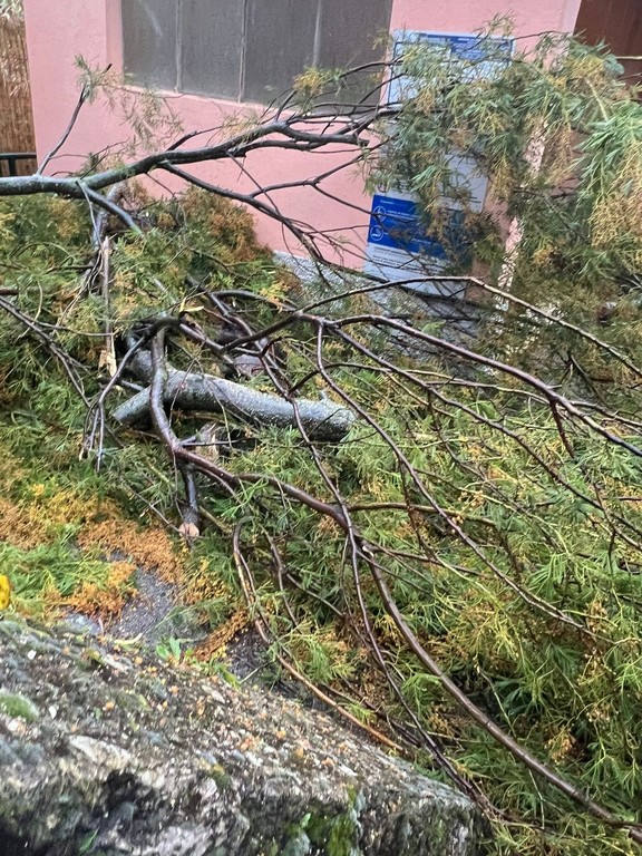 Airole, albero cade sulla linea ferroviaria: sindaco e residenti al lavoro per sgomberare i binari (Foto)