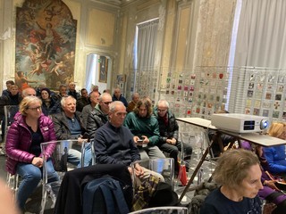 Sala Incontri del Museo civico di palazzo Nota a Sanremo gremita ieri per la presentazione da parte dell’’associazione Esprit Sanremo, Perinaldo e de La Cote del libro di Stefano Alfano e Enrico Nigrelli “Stel. Dalla Stel alla Riviera Trasporti: 80 anni di filobus a Sanremo.