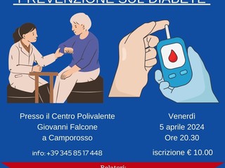 Un corso sulla "Prevenzione sul diabete" verrà proposto venerdì prossimo, il 5 aprile, alle 20.30 da Aceb - Associazione Culturale Eventi Benefici presso la sala polivalente Giovanni Falcone a Camporosso.