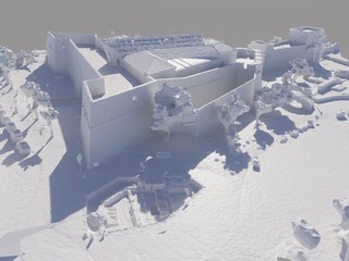 Con la collaborazione di docenti professionisti del settore e del fotografo pilota Duilio Rizzo, adottando le metodologie più avanzate attualmente disponibili, è stata riprodotta la perfetta ricostruzione topografica tridimensionale dell'edificio in formato cad.
