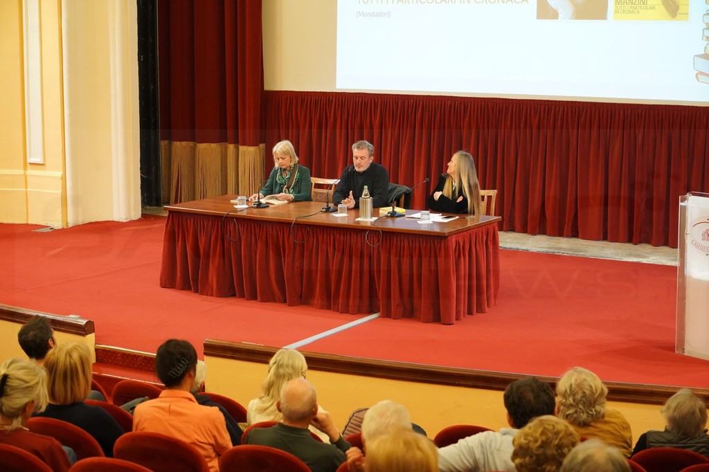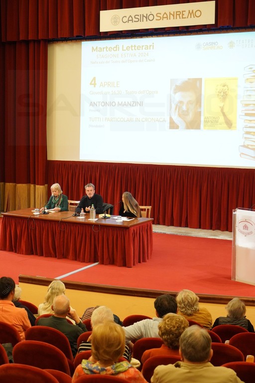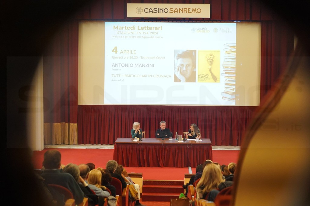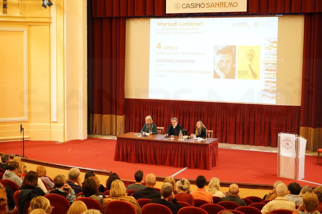 Un piacevole ritorno quello di Antonio Manzini, ieri ai Martedì Letterari del Casinò di Sanremo. Il notissimo ed apprezzato scrittore e sceneggiatore, creatore della serie dedicata a Rocco Schiavone ha aperto, al teatro dell’Opera, la stagione primaverile della rassegna con il suo attesissimo giallo Mondadori ‘Tutti i particolari in cronaca’.
