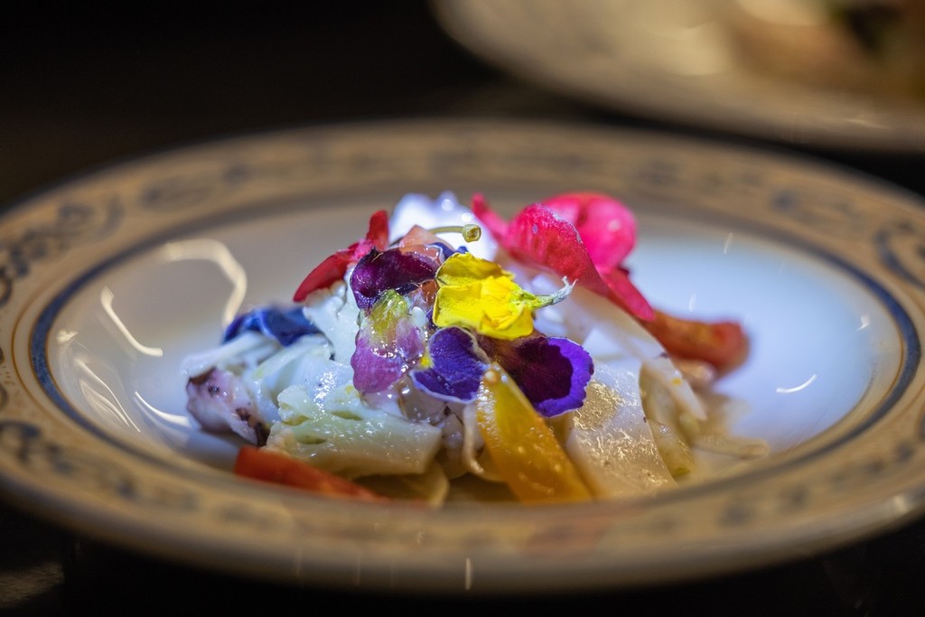 Per capire abbinamenti, scoprire gusti inediti e sapori racchiusi nelle violette con cui si realizza una delicata maionese abbinata all’asparago; scoprire il risotto con il geranio, caprino e crudo di gamberi; tuffarsi nel mare con un piatto al baccalà in olio di cottura con riduzione di carote e arancio e trovarsi le bocche di leone come ingrediente del piatto. E, dulcis in fundo, un dessert come la Bavarese alla Begonia con salsa al fondente nero.