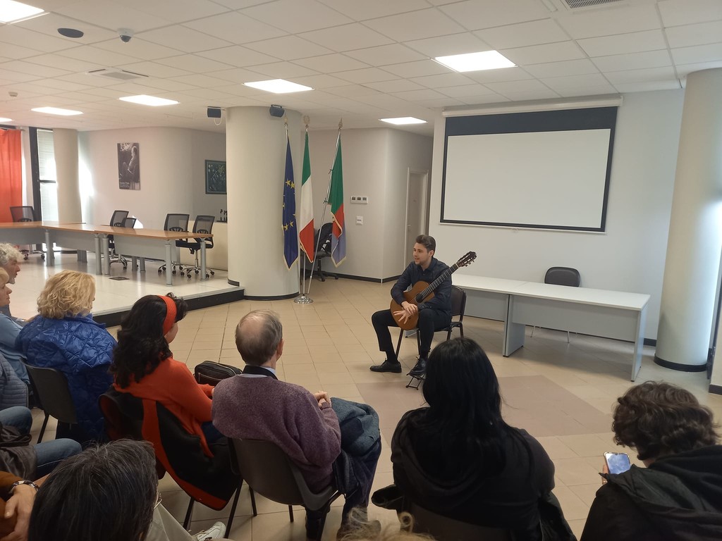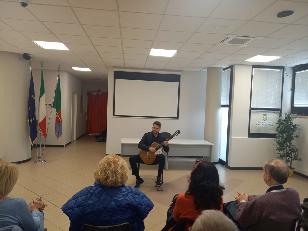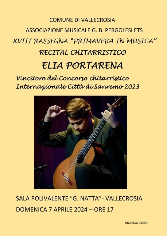 Il "Recital chitarristico" di Elia Portarena, vincitore del concorso chitarristico internazionale città di Sanremo 2023, incanta il pubblico della sala polivalente a Vallecrosia in occasione del terzo incontro della rassegna 'Primavera in Musica' organizzata dall'associazione musicale G.B. Pergolesi e dal Comune.