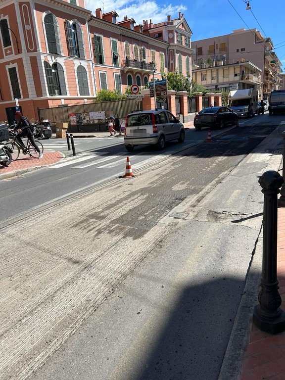 Continuano i lavori di asfaltatura nella città di Bordighera. E', infatti, iniziato un intervento in via Vittorio Emanuele II.