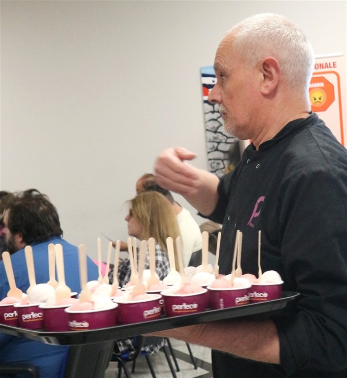 Grande stupore per le innovazioni nel campo della gelateria proposte dal maestro Aldo de Michelis, gelateria Perlecò di Alassio fra cui il gelato e il sorbetto alla Begonia, che hanno conquistato tutto il pubblico presente.