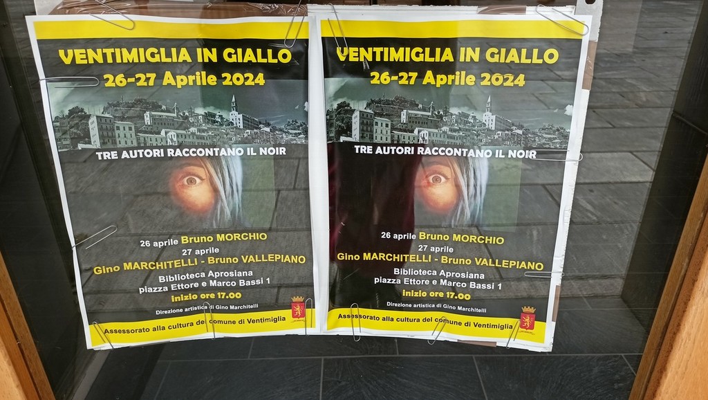 Bruno Morchio, Bruno Vallepiano e Gino Marchitelli special guest a "Ventimiglia in giallo" andato in scena ieri e oggi presso la biblioteca Aprosiana.