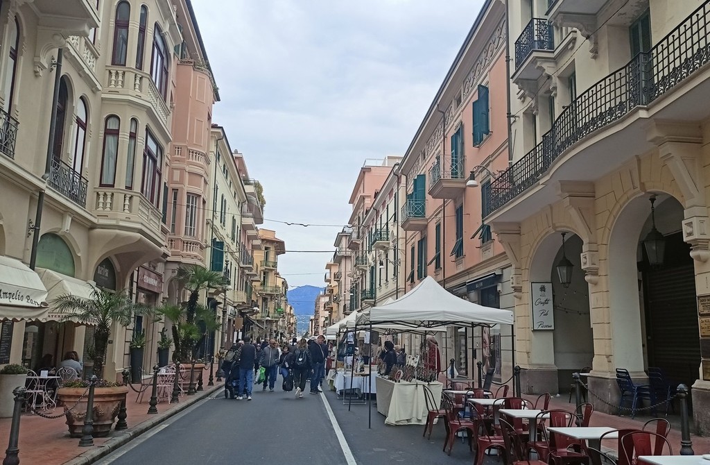 Nonostante il tempo uggioso, tante persone, turisti e residenti, a partire dalle 8, si sono ritrovate nell'isola pedonale allestita nel centro cittadino di Bordighera per fare shopping tra i banchi degli ambulanti e gli stand con artigianato.