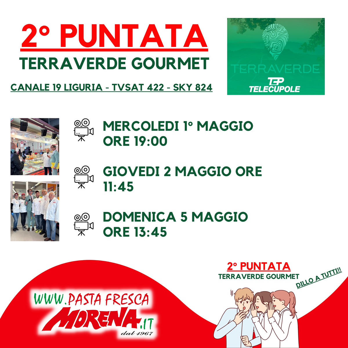 Non perdete la seconda puntata di Terraverde Gourmet, in onda su Telecupole (canale 11), canale 19, Sky (canale 824) e Tv Sat (canale 422) mercoledì 1° maggio alle 19:00, giovedì 2 maggio alle 11:45 e domenica 5 maggio alle 13:45!