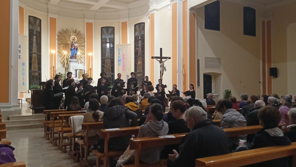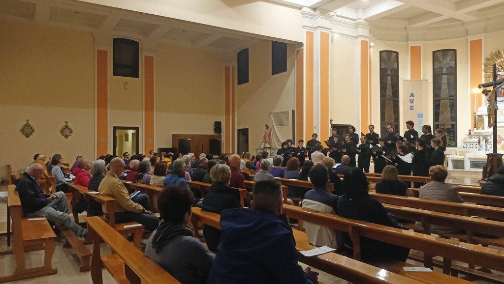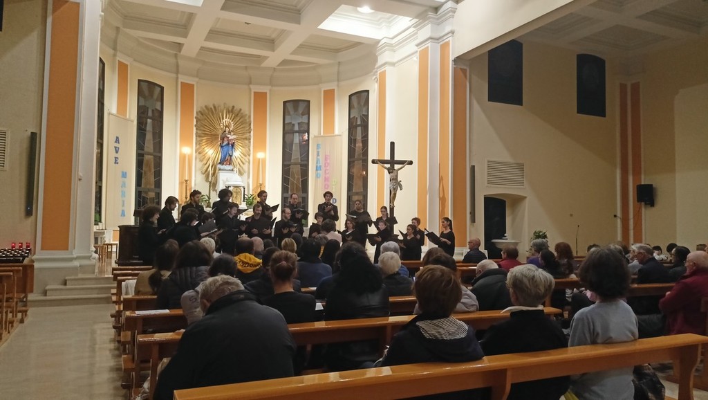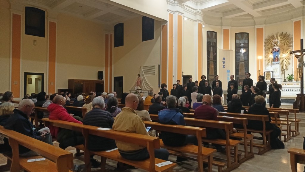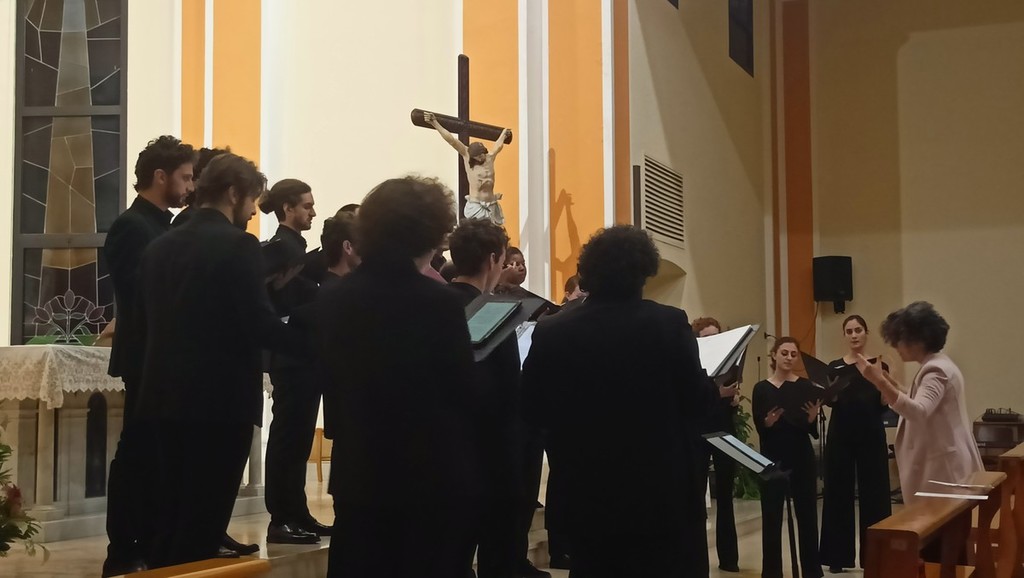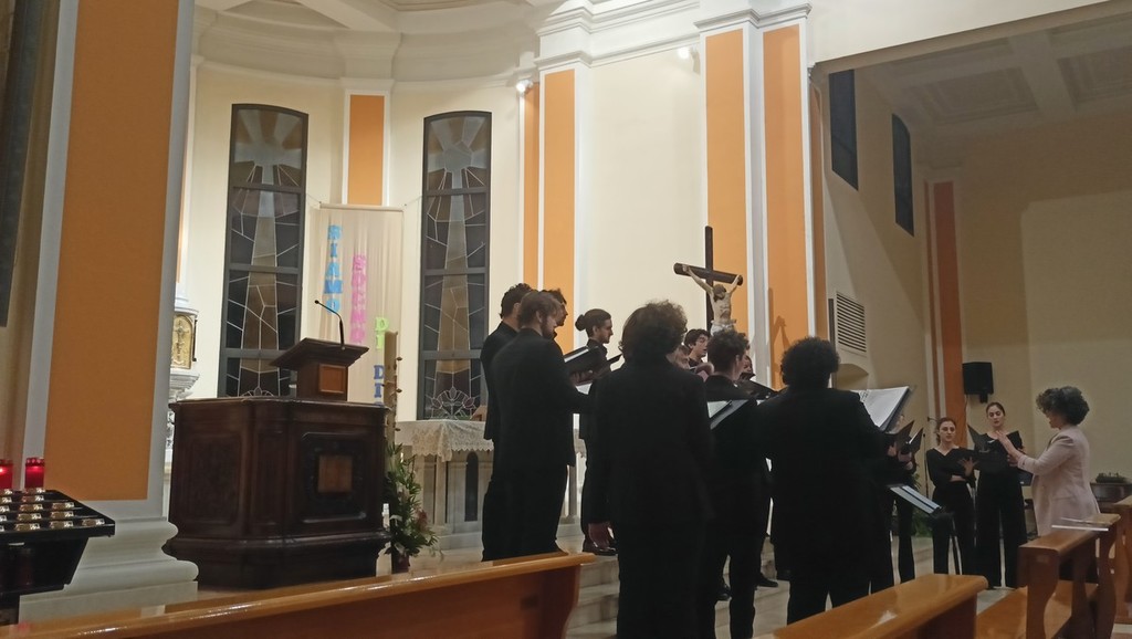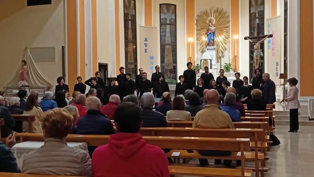 Dopo l'incontro con il professor Gigi Borgiani, direttore della Fondazione Auxilium di Genova e già segretario nazionale dell'Azione Cattolica Italiana, che ha parlato de "La via di Francesco", quello con la dottoressa Alessandra Morelli, già delegata dell'Alto Commissariato delle Nazioni Unite per i Rifugiati (UNHCR), su "Restare umani, speranza di pace" andati in scena nella parrocchia di San Rocco, e quello con il professor Silvano Petrosino, filosofo, docente di Teorie della Comunicazione e Antropologia religiosa e media all'Università Cattolica di Milano, su "Desiderio e spiritualità", il coro Sibi Consoni, diretto da Roberta Paraninfo, ha proposto una serie di riflessioni in musica.