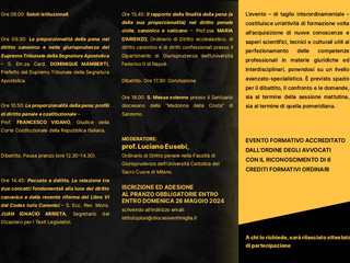 La Giornata si svolge in collaborazione con l’Ordine degli Avvocati e l’Unione Italiana Giuristi Cattolici. Ai partecipanti verranno riconosciuti 6 crediti formativi e verrà rilasciato attestato di partecipazione. L’incontro si rivolge specialmente a operatori del mondo del diritto, sia civile che canonico, e a studenti.