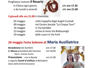 Una serie di momenti di preghiera e di raccoglimento per recitare il santo rosario verranno organizzati nel mese di maggio, tradizionalmente dedicato alla Madonna, nella parrocchia di Maria Ausiliatrice a Vallecrosia.