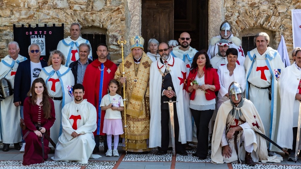 Una pellegrina ed un eques, nuovi membri della Pauperes commilitones Christi Templique Solomonici, e quattro eques, nuovi memebri dell’Ordos Supremus Militaris Templis Hierosalomitani Orbis-Templar World, hanno ricevuto la benedizione solenne da parte dell’Arcivescovo Vicario Generale della Chiesa Ortodossa in Italia, Sua Altezza Reverendissima Giovanni Luca, al secolo Monsignor Gianluca de Lucia, nella sua duplice funzione di Metropolita Sostituto d’Italia ed Abate Commendatario del Principato del Sabourg.