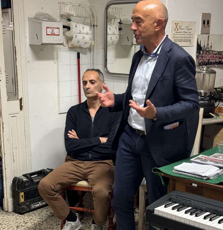 Il candidato Sindaco della coalizione civica per Sanremo, Alessandro Mager, accompagnato dal Presidente del Consiglio comunale Alessandro Il Grande (Sanremo al Centro) ha fatto visita ai locali dove la Banda Folkloristica Canta e Sciuscia effettua le prove settimanali.