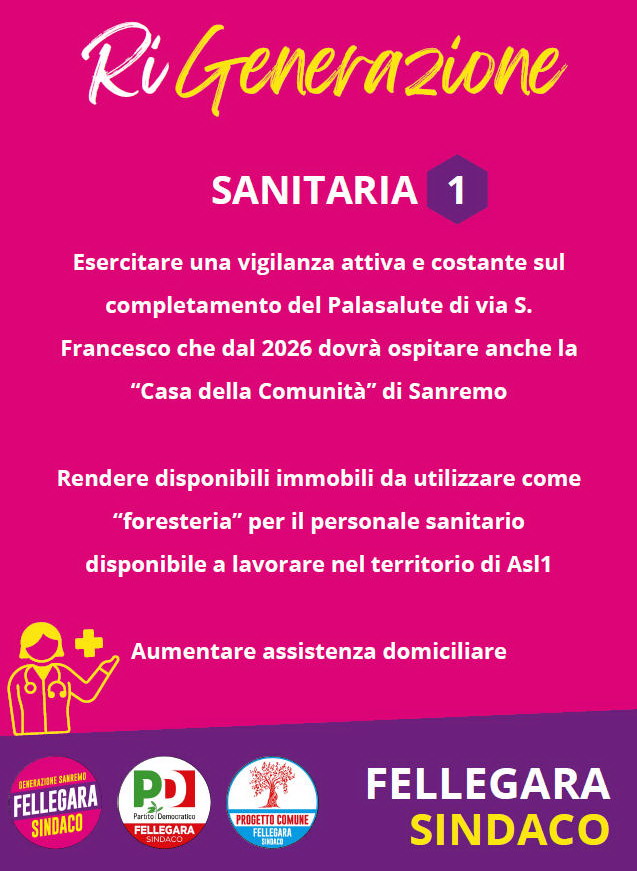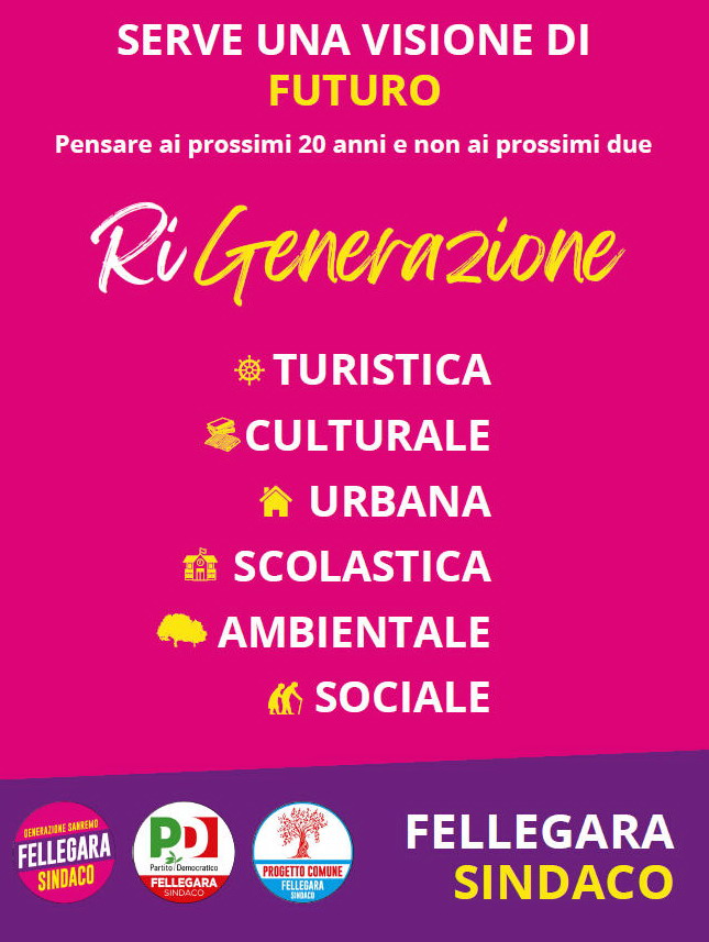 "La situazione del benessere cittadino - afferma il candidato - è disastrosa, tra abbandono scolastico, poca offerta lavorativa e un turismo, da sempre portatore di soldi, ridotto al mordi e fuggi”. Altro problema è quello relativo alla solitudine, nello specifico quello degli anziani, e alla condizione economica precaria di molti cittadini costretti anche a rinunciare a bisogni fondamentali come le cure mediche e farmacologiche. Tutte queste sono le questioni che hanno spinto Fellegara a candidarsi a sindaco di Sanremo, per poter, come afferma “Rappresentare gli interessi e i bisogni di tutta la comunità, con pari opportunità”.