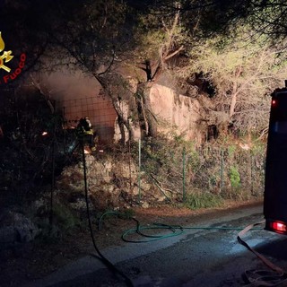Ventimiglia: spento nel corso della notte l'incendio di ieri sera a Mortola Superiore, a fuoco vegetazione e una roulotte (Foto)